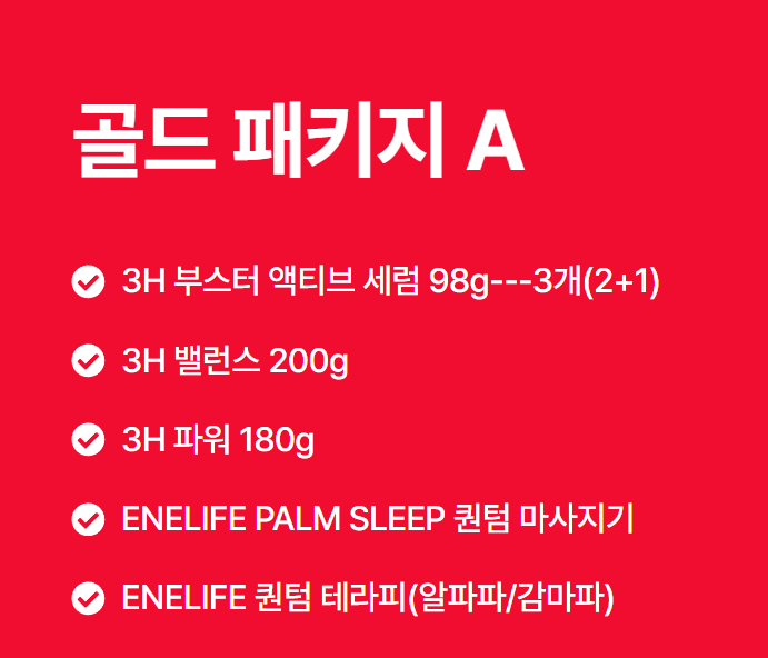 Products 제품소개 홈 · 제품소개 · 제품소개 3H Quantum 패키지 전체 3H 파워 180g 3H 밸런스 200g 3H 부스터 액티브 세럼 98g 골드 패키지 A 뷰티 패키지 A 헬스 패키지 A 파트너 마스터 패키지 B 파트너 스타트 패키지 B 파트너 석세스 패키지 B Page1 Page2